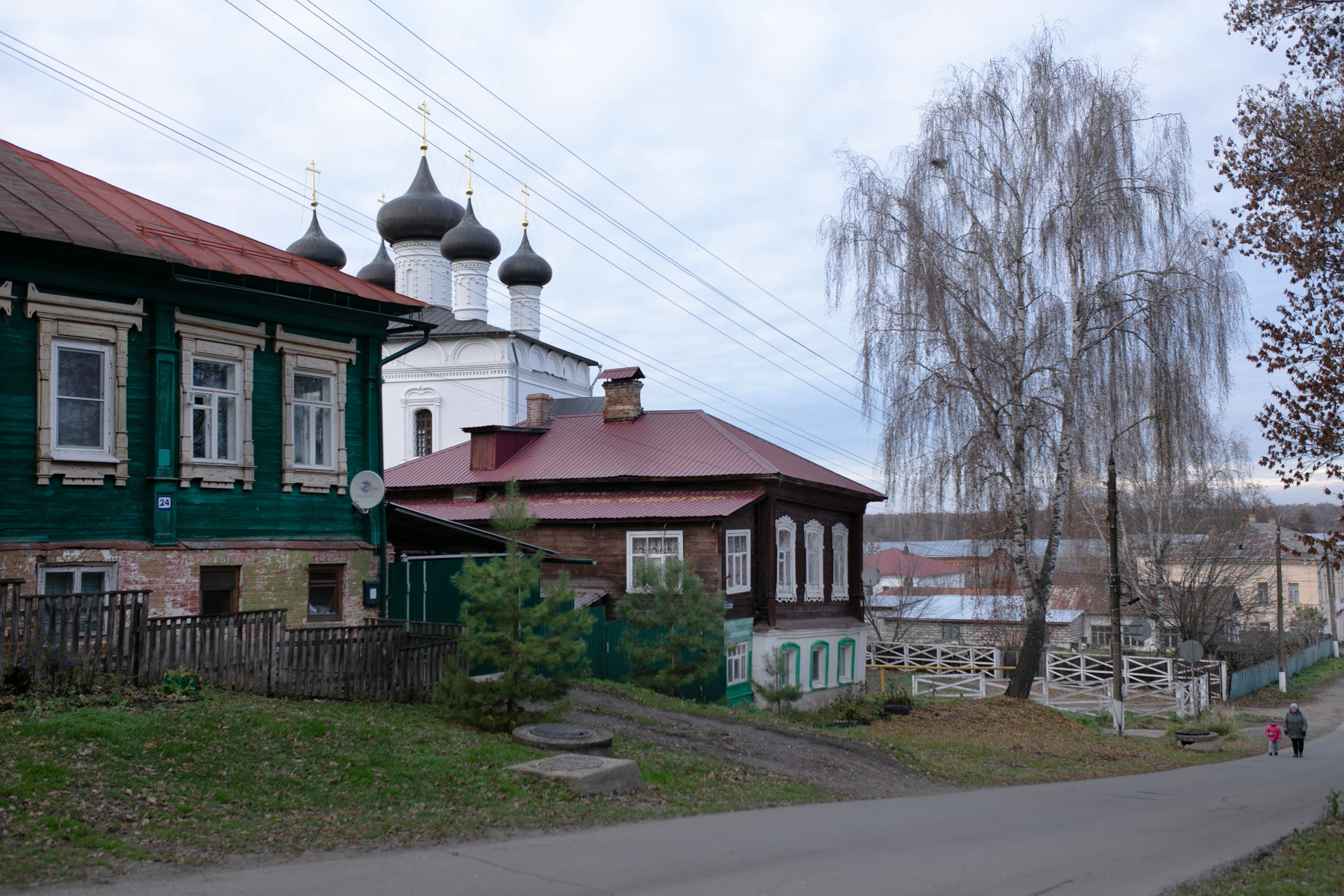 По дороге из Мурома в Гороховец тихие сосновые боры с густыми кронами сменялись почти прозрачными березовыми рощами. Сочетание всех оттенков желтого, коричневого и зеленого напоминали о конце осени. Машин мало, людей тоже — идеальное время для путешествия. Чистейший воздух с нотками дровяных печей и тишина. Тишина, изредка звенящая колокольным звоном.
