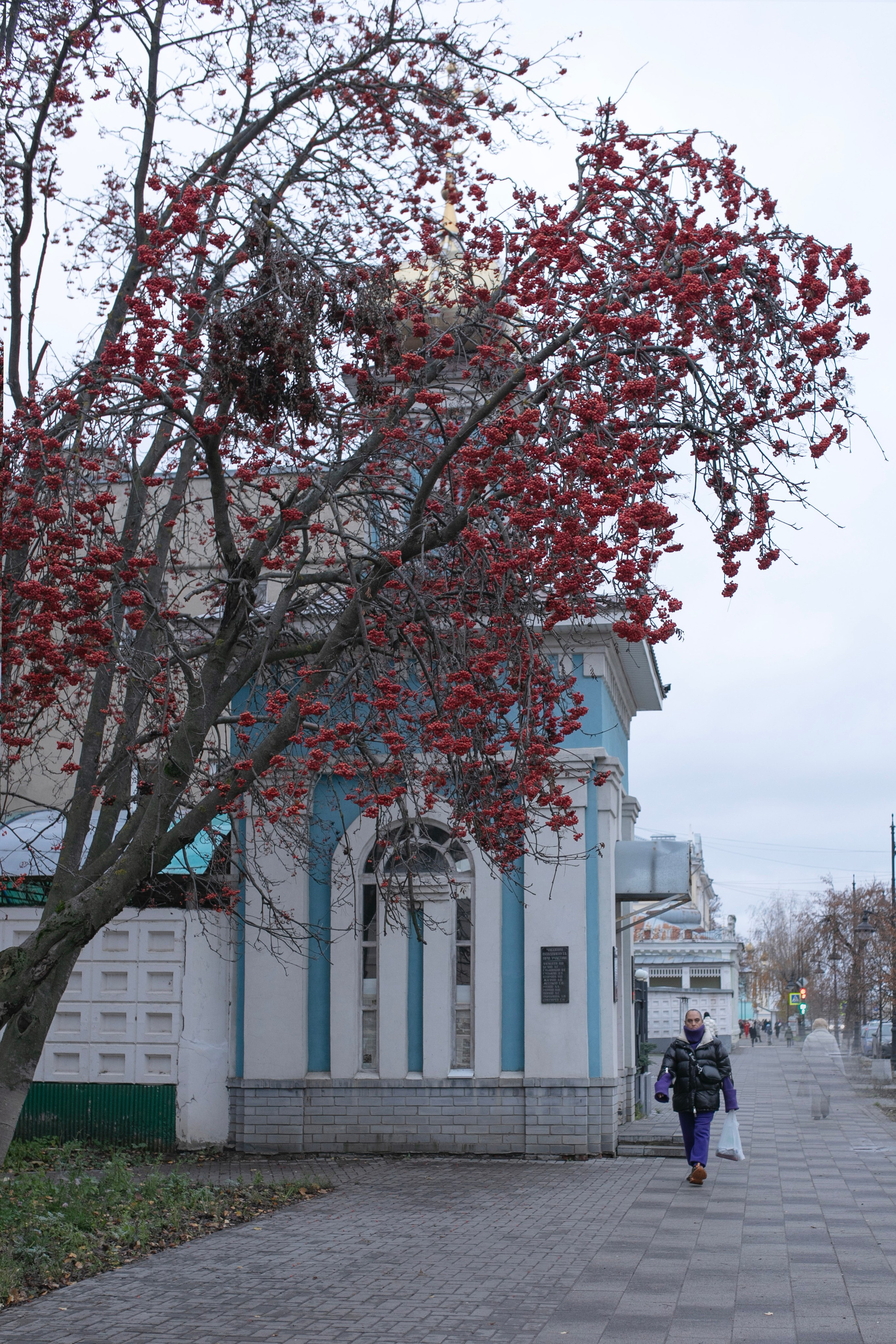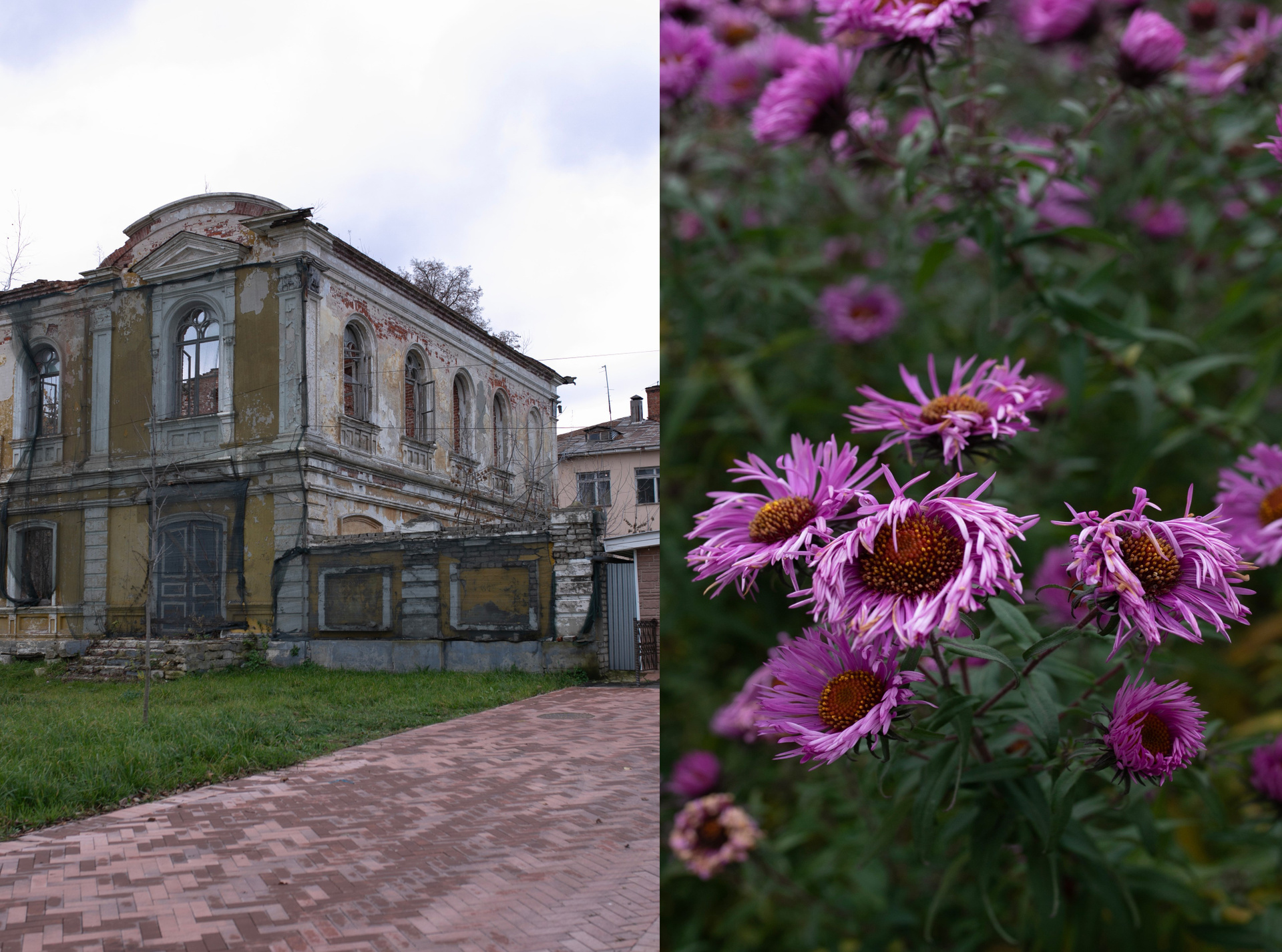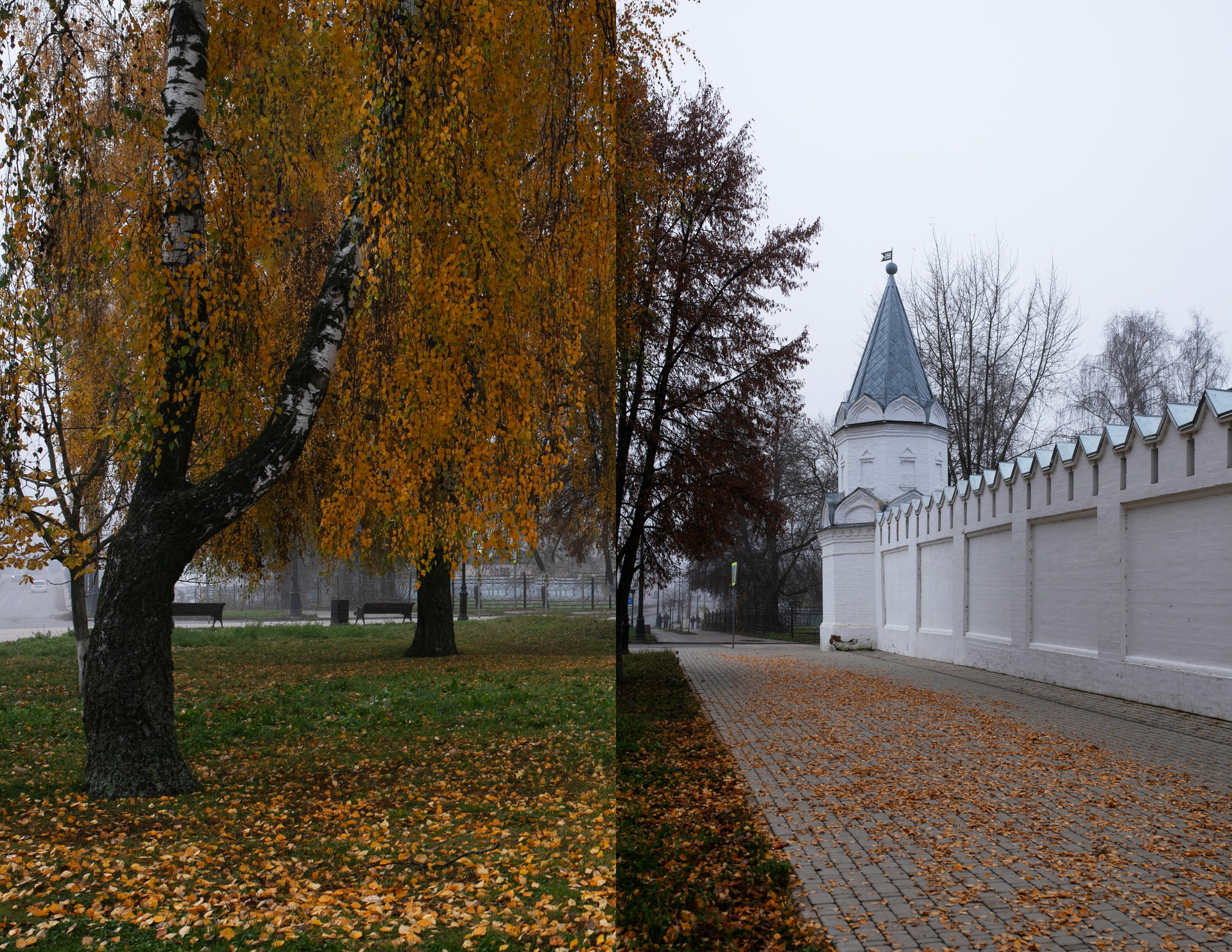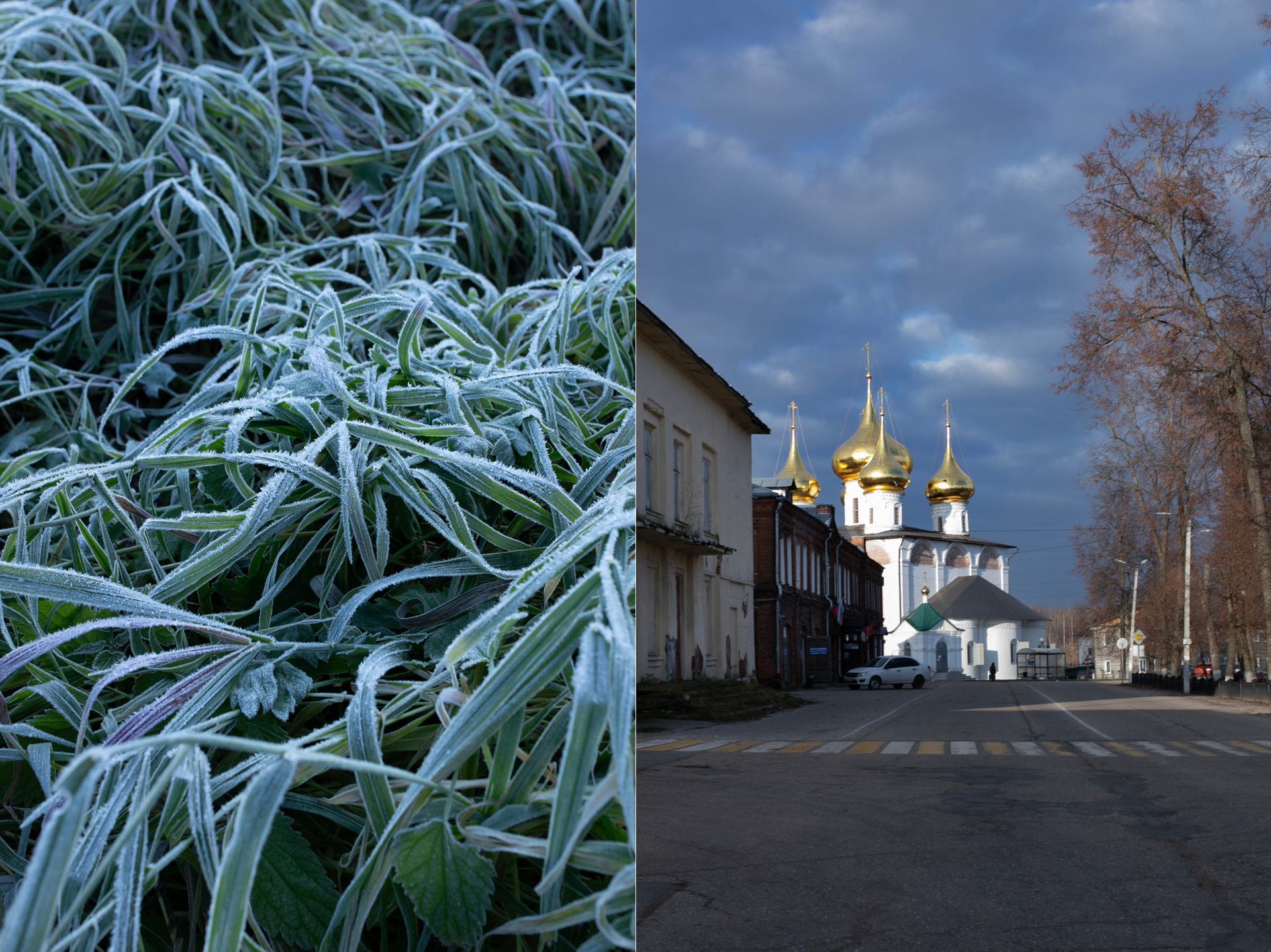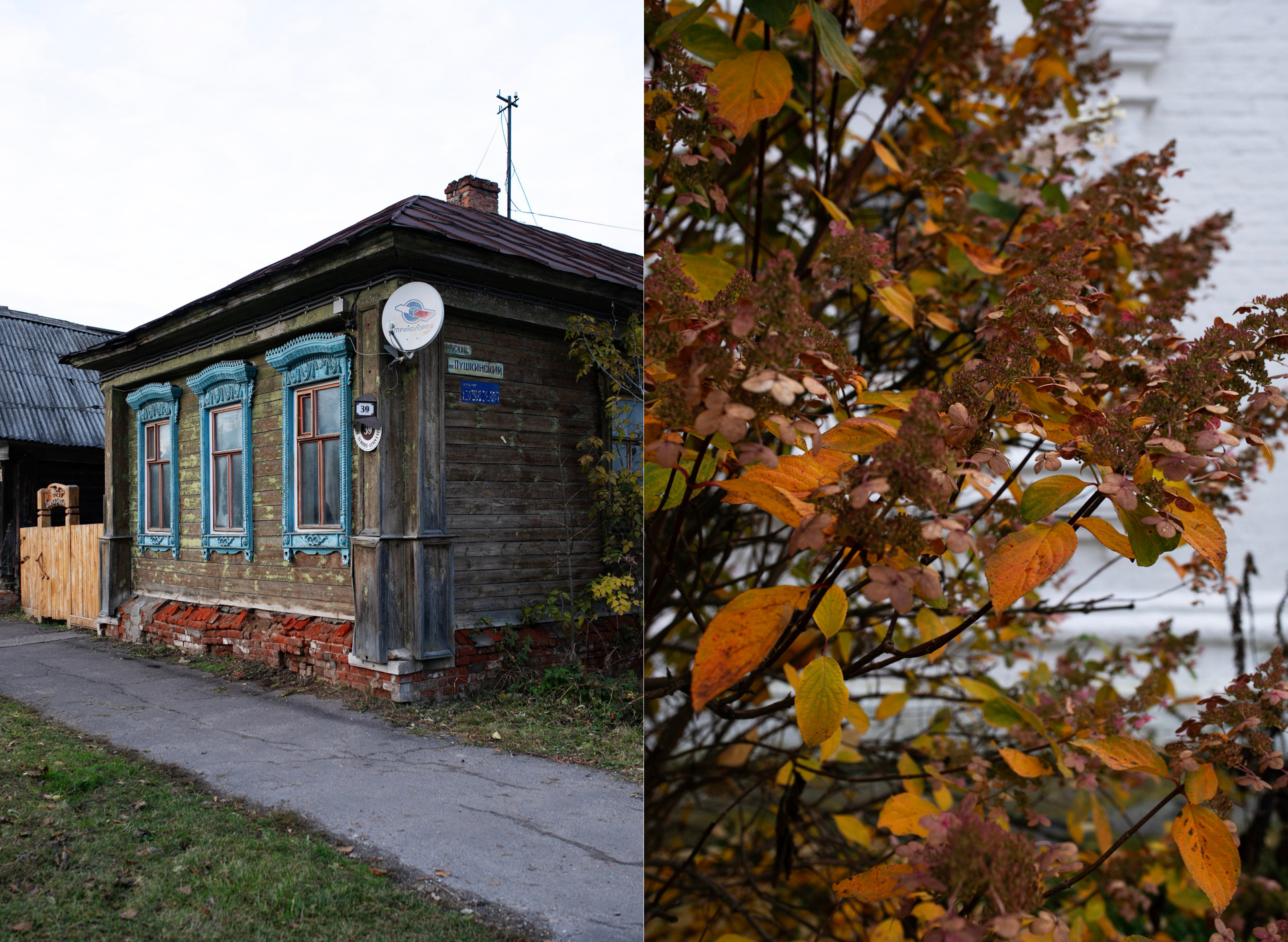 Серое небо, мягкий свет — лучшее сочетание для цвета. И Муром, и Гороховец — интеллигентные, не кричащие в плане цветов, размеренные, неспешные и самобытные. Радости добавляют желтые листочки, еще задержавшиеся на старых березах, ярко-красные гроздья рябин и россыпи хризантем всех оттенков фиолетового.